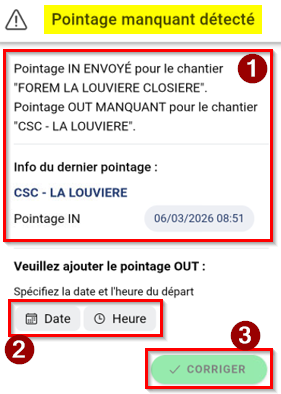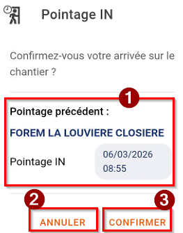 4. Enregistrez votre Pointage : CHECK-IN ou CHECK-OUT :